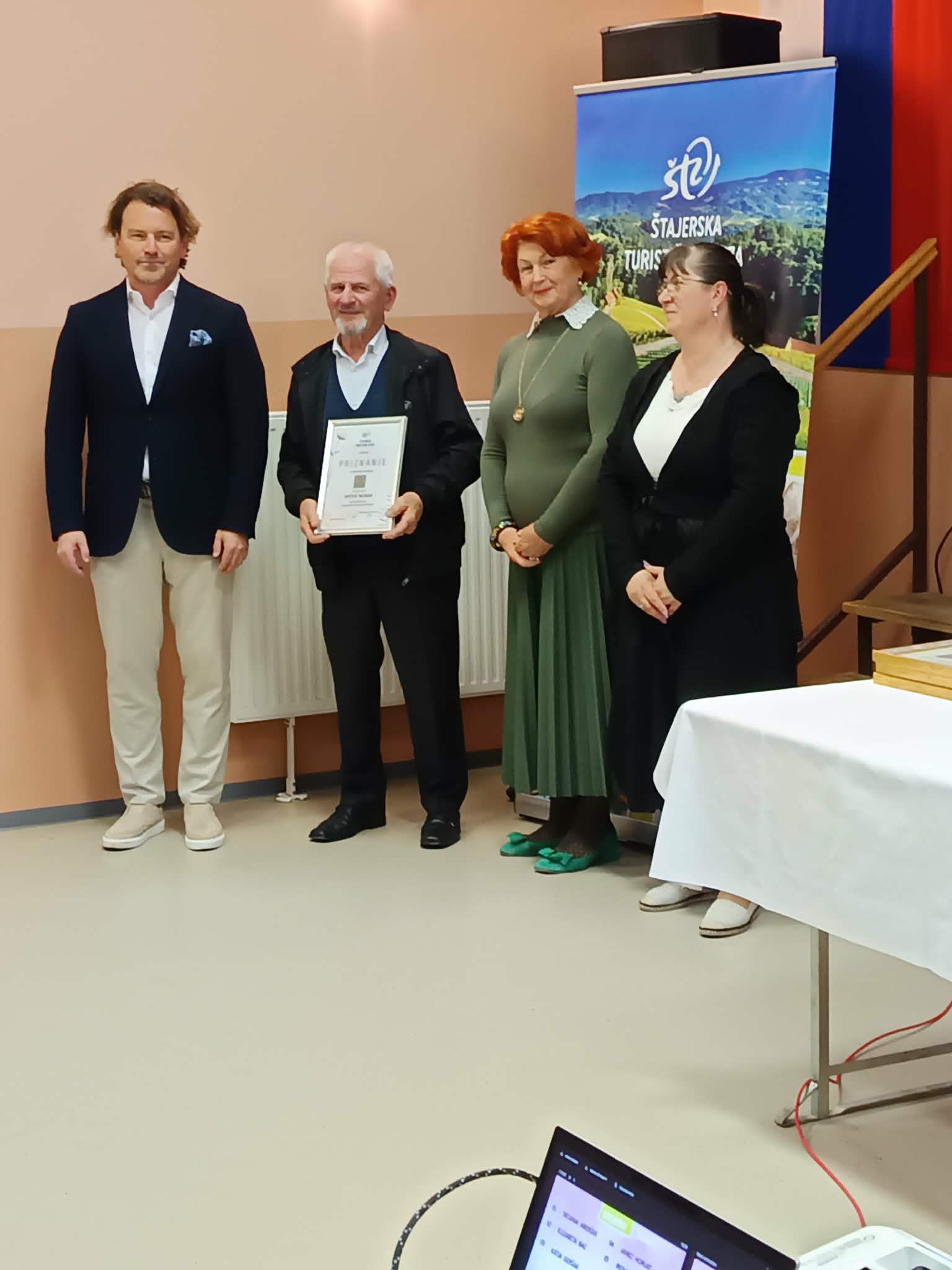Viktor Munda, prejemnik srebrnega in Vlado Nedeljko, prejemnik bronastega priznanja za mnogoletno delo v Turističnem društvu Polenšak, ki jih je podelila Štajerska turistična zveza 😊🏆💐